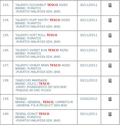 Mungkin ramai yang tidak sedar juga yang produk – produk makanan tesco juga mengambil bahan – bahan daripada syarikat Puratos ini, anda boleh melihatnya di website Halal Jakim dengan KLIK SINI.