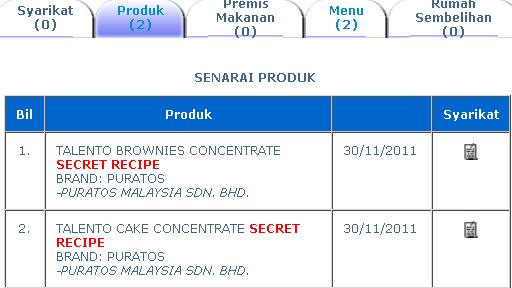 Syarikat Secret Recipe mendapatkan bahan – bahan daripada syarikat ini, antara produk yang digunakan dari syarikat Puratos anda boleh lihatnya di website Halal Jakim dengan klik pada Caption gambar di bawah.